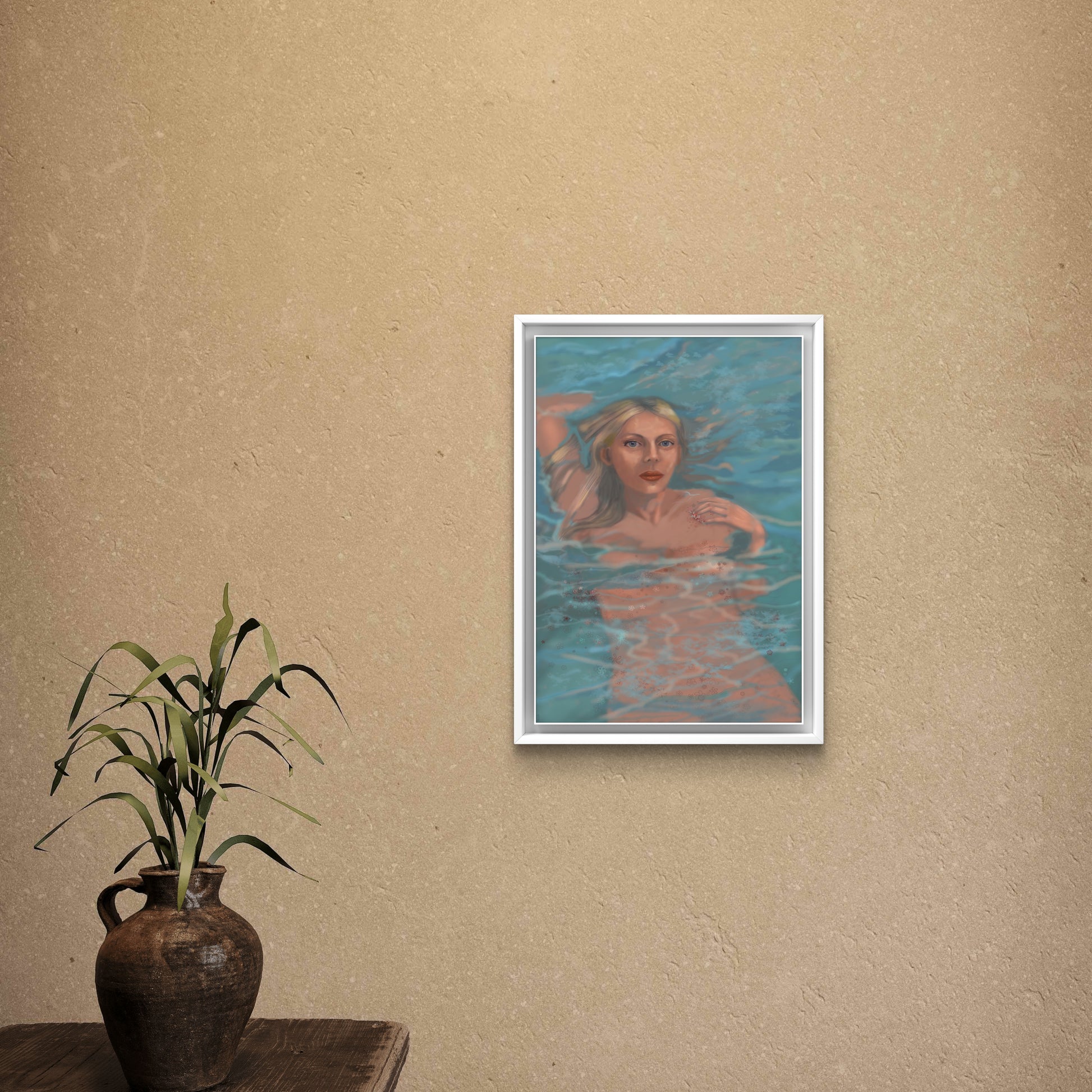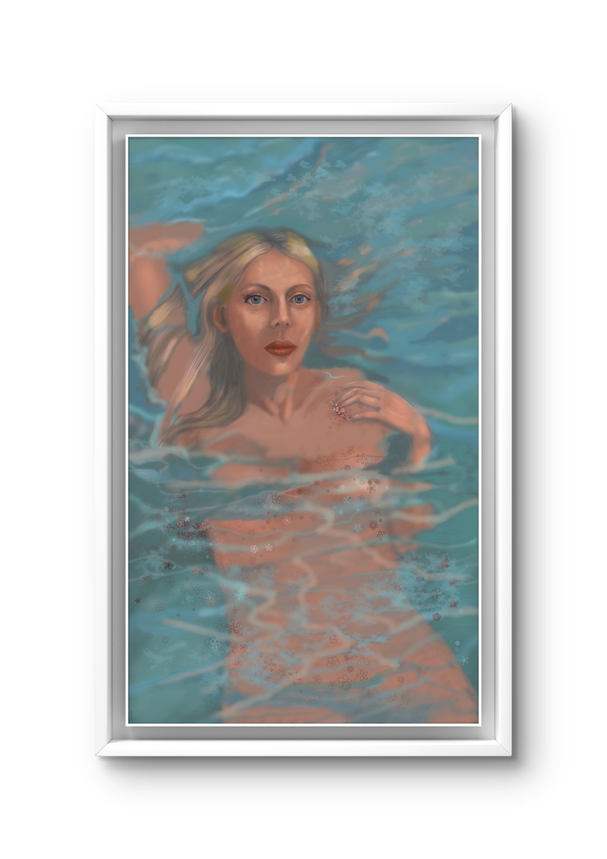 Das Wasser ist hier kein Hintergrund, sondern ein Zustand: weich, fließend, durchlässig. Es verschleiert und offenbart zugleich. Haut, Licht und Farbe verschmelzen zu einer ruhigen, beinahe träumerischen Oberfläche, in der sich kleine Details erst beim längeren Hinsehen zeigen.